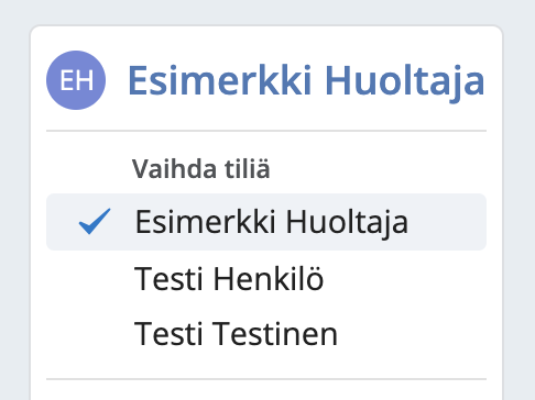 Huom. jos huoltajana haluat päivittää useamman henkilön tietoja, voit vaihtaa henkilöstä toiseen sivun oikean laidasta valitsemalla henkilön nimen